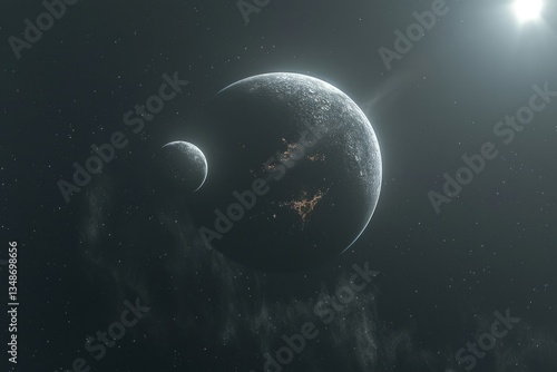 © Alesha, Obraz premium Cosmic collision, planets, space debris, nebulae background, science fiction