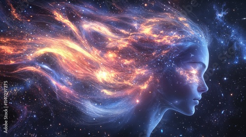Fototapeta premium Cosmic Consciousness: A Woman's Profile Emerging from a Starry Sky