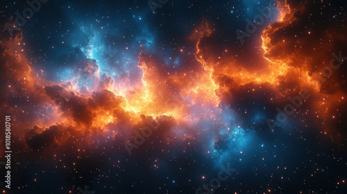 Naklejka premium Cosmic Dance of Fire and Ice, A Celestial Ballet of Blazing Nebulae and Sparkling Stars