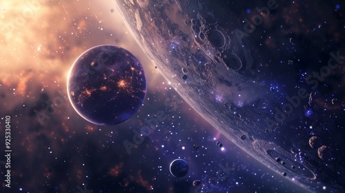 Obraz premium Cosmic Dance: Planets and Stars in a Distant Galaxy