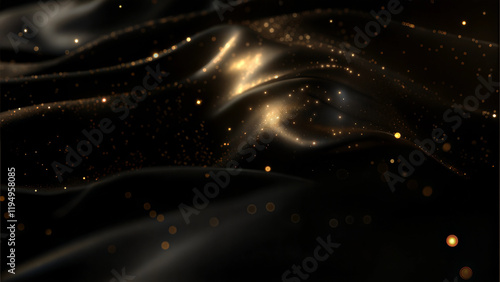 © Lara, Obraz premium Cosmic digital illustration with swirling golden particles on a dark backdrop