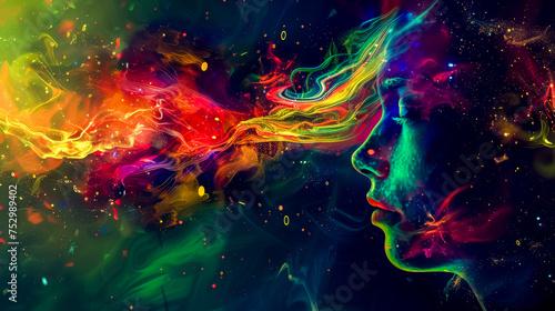 Obraz premium Cosmic dreams - abstract colorful woman profile