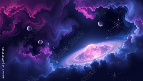 Naklejka premium Cosmic Dreamscape: Surreal Nebula, Planets, and Stars Art for Fantasy Book...