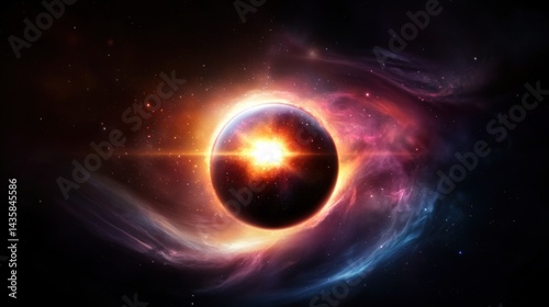 Obraz premium Cosmic Eclipse, Burning Planet, Nebula Swirls, Space Background