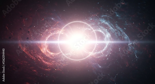 © NguyenHaiPhuong, Obraz premium Cosmic Energy Burst Vibrant Hues Abstract Art. AI Generated