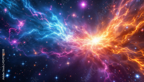 Fototapeta premium Cosmic energy explosion with vibrant electric currents in deep space