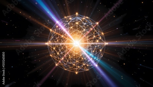 Fototapeta premium Cosmic Energy Sphere, Abstract glowing sphere with energy beams in space