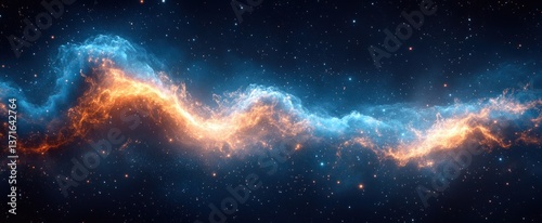 Fototapeta premium Cosmic Energy Waves Digital Abstraction in Dark Universe Radiant Blue White...