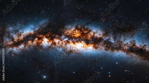 © Lely, Fototapeta premium Cosmic expanse displays fiery nebulae amidst starlit void.