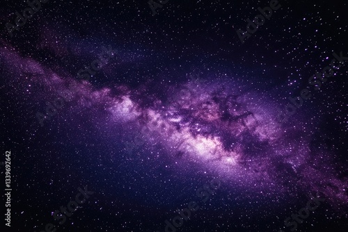 Fototapeta premium Cosmic expanse of the Milky Way galaxy. A vibrant tapestry of purple and violet nebulae, filled with countless stars