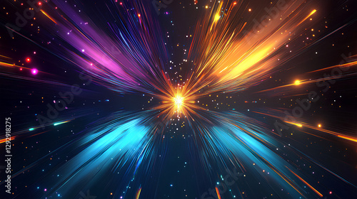 Naklejka premium Cosmic Explosion - Abstract Energy Burst with Vibrant Light Streaks in Space