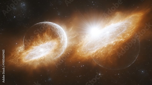 Obraz premium Cosmic explosion between two celestial bodies.