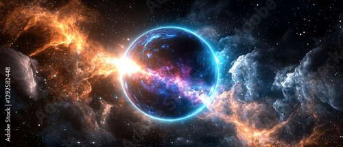 Obraz premium Cosmic explosion event outer space digital art nebula environment vivid viewpoint astronomical concept for seo impact
