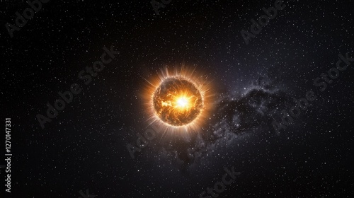 © Narongsag, Obraz premium Cosmic Explosion Fiery Stellar Flare Galaxy Space Background