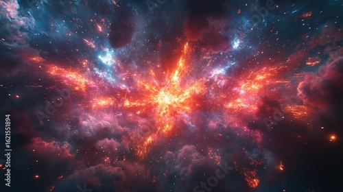 Fototapeta premium Cosmic explosion illuminating a vibrant nebula scene