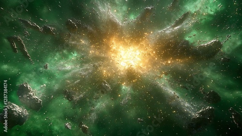 Fototapeta premium Cosmic explosion in nebula, space debris