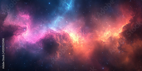 © Deja, Fototapeta premium Cosmic explosion of colorful nebulae outer space digital art universe wide shot astronomy exploration