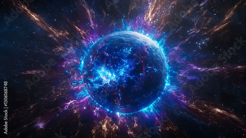 Obraz premium Cosmic explosion of glowing nebulae outer space digital art sci-fi...