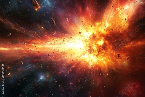 Naklejka premium Cosmic Explosion Supernova Fiery Space Astrophysics Galaxy...