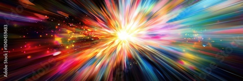 Fototapeta premium Cosmic explosion, vibrant burst of energy, multicolored light rays, abstract...