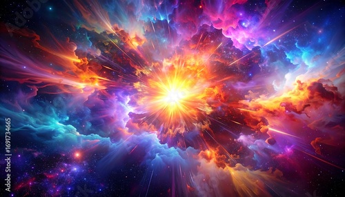 Naklejka premium Cosmic explosion, vibrant nebula