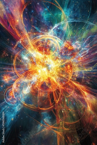 Fototapeta premium Cosmic explosion; vibrant, swirling nebula; fiery energy.