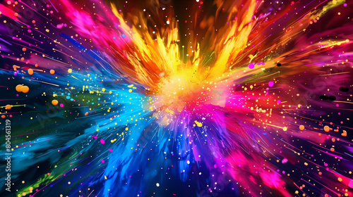 Fototapeta premium Cosmic Explosion, Vivid Multicolored Light Burst, Abstract Space Art with...