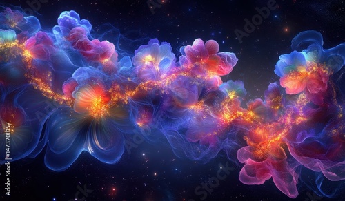 © Rahman, Naklejka premium Cosmic floral nebulae in swirling, vibrant hues