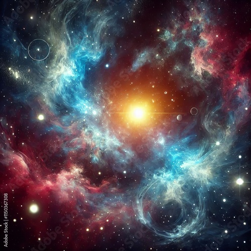 Fototapeta premium Cosmic Illustration of Supernova Nebula and Stars - Glowing Mysterious...