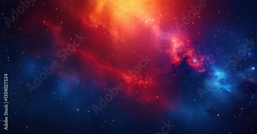 Naklejka premium Cosmic inspired gradient background deep indigo fading fiery red orange fine grainy noise texture layered geometric space like depth glowing highlights bright colorful