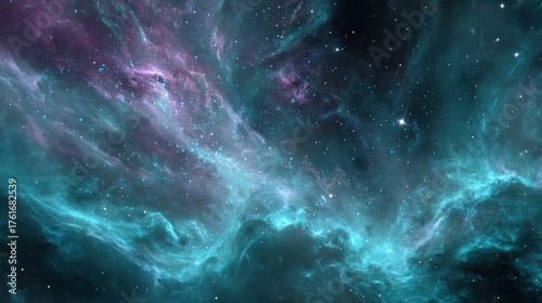 Fototapeta premium Cosmic landscape featuring vibrant colors and swirling nebulae in a vast...