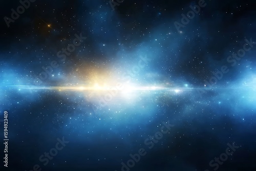 Naklejka premium Cosmic light and stars on a blue and gold nebula background, a celestial scene