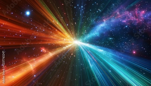 Naklejka premium Cosmic Light Rays Burst Through Starry Nebula