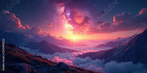 © Chanchai, Fototapeta premium Cosmic luminosity permeating an endless landscape, cosmic, ambient