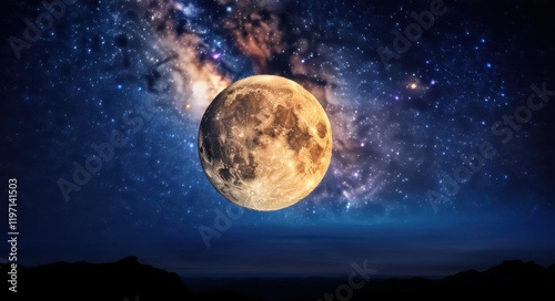 © edisetiawan.id, Fototapeta premium Cosmic Majesty: The Moon Amidst Galactic Splendor.