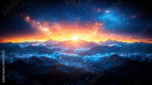 © Bejo Studio, Fototapeta premium Cosmic mountain sunrise