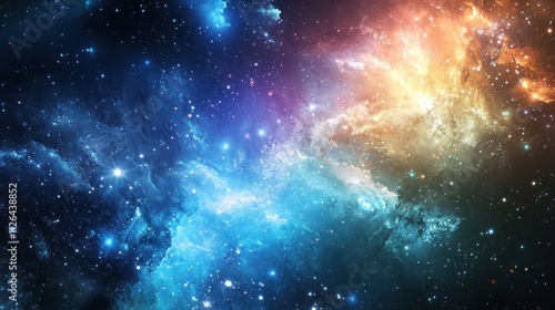 © zaen_studio, Fototapeta premium Cosmic Nebula: A Celestial Tapestry of Blue and Orange Hues
