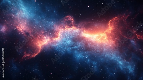 Naklejka premium Cosmic Nebula: A Celestial Tapestry of Red and Blue