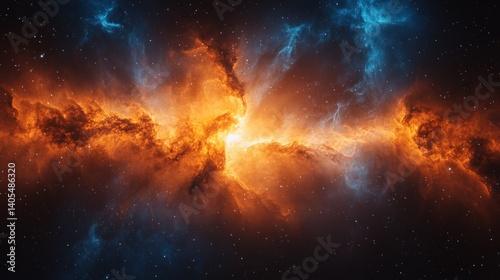 Fototapeta premium Cosmic Nebula: A Fiery Dance of Celestial Gases