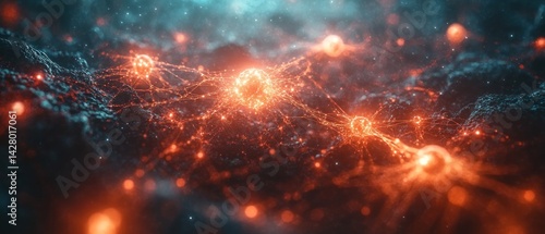© @Luthfi, Fototapeta premium Cosmic Nebula: A Symphony of Orange and Teal