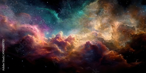 Fototapeta premium Cosmic Nebula, A Vibrant Symphony of Stars and Gas Clouds, Illuminating the Vastness of Space with Breathtaking Hues