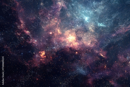 © Hadiyah, Naklejka premium Cosmic Nebula Displaying Sparkling Celestial Bodies with Varying Colors and Lighting in Outer Space