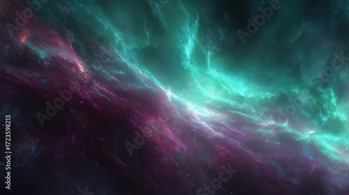Fototapeta premium Cosmic Nebula Displaying Vibrant Teal And Pink Hues