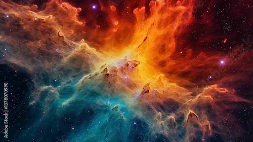 © Andisucijaya, Obraz premium Cosmic Nebula Displays Vibrant Orange and Teal Hues