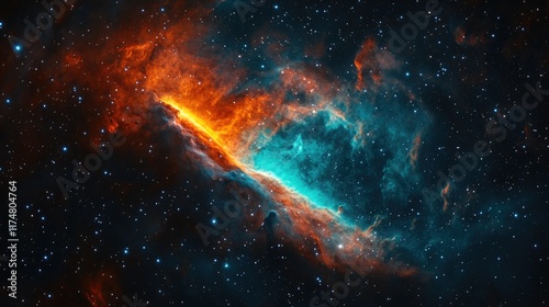 © Berkah1789, Fototapeta premium Cosmic Nebula Displays Vivid Orange and Teal Hues