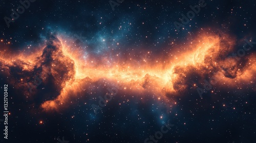 Fototapeta premium Cosmic Nebula Fiery stellar clouds clash in deep space, background stars