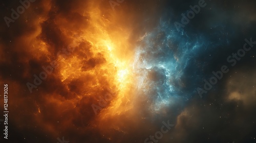 Fototapeta premium Cosmic Nebula Fire and Ice Collision in Space