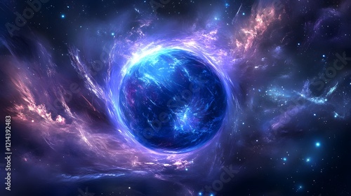 Obraz premium Cosmic Nebula Glowing Planet in Purple and Blue Space
