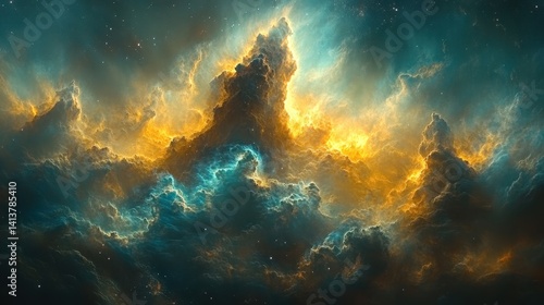 Fototapeta premium Cosmic Nebula Golden and Teal Cloudscape