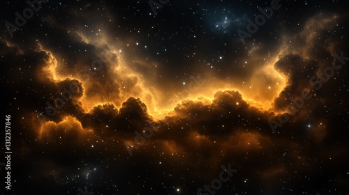 Fototapeta premium Cosmic Nebula: Golden Hues in the Infinite Void